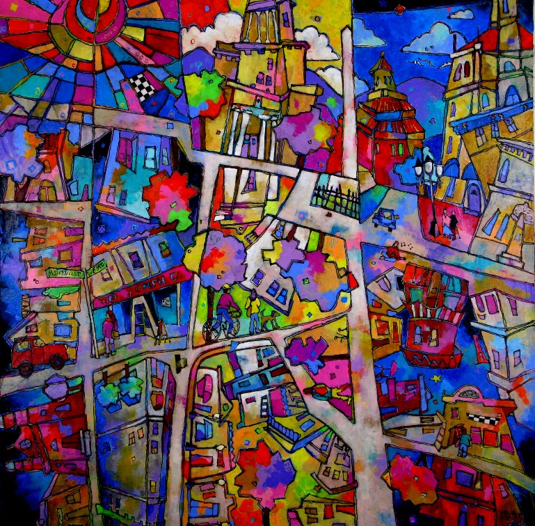 Caption on left edge of painting: Asheville, Life Outside the Lines