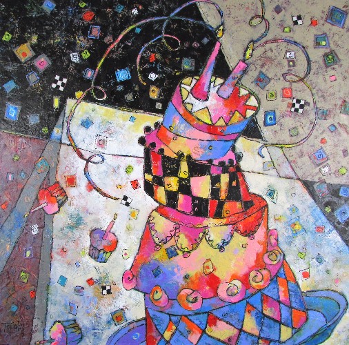 Caption on side of canvas: "It seemed like a good idea at the time."