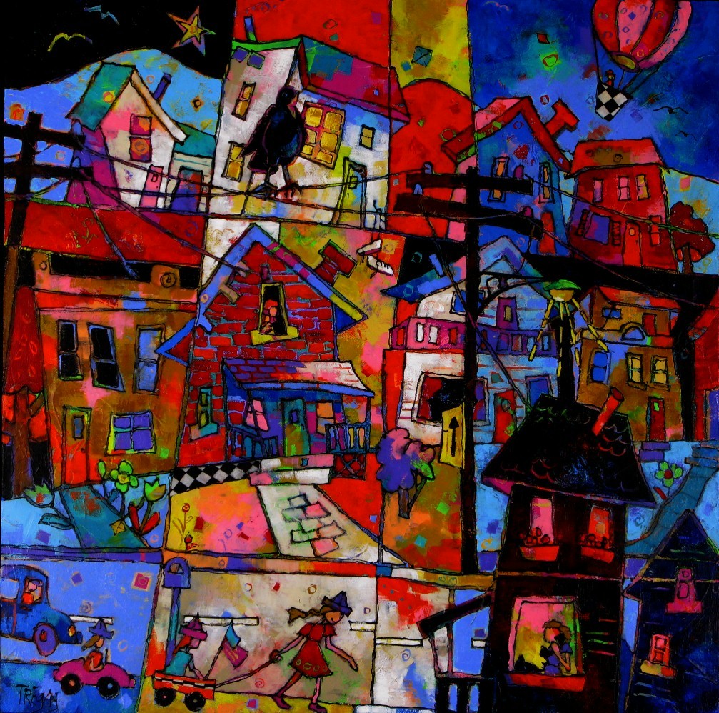 Caption on left edge of canvas: "When phones were heavy and stayed home"