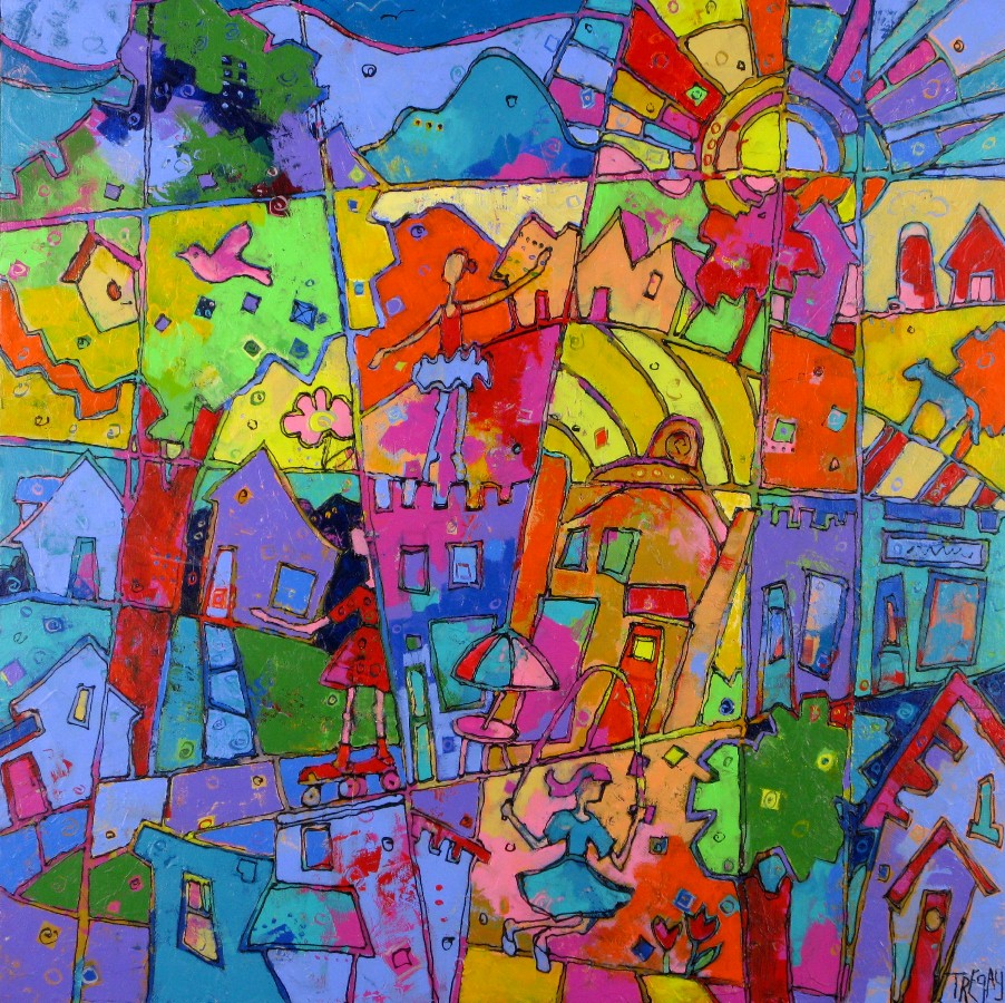 "Everyone Else Lived on the Hill," acrylic on canvas, 24 x 24 x 1.5